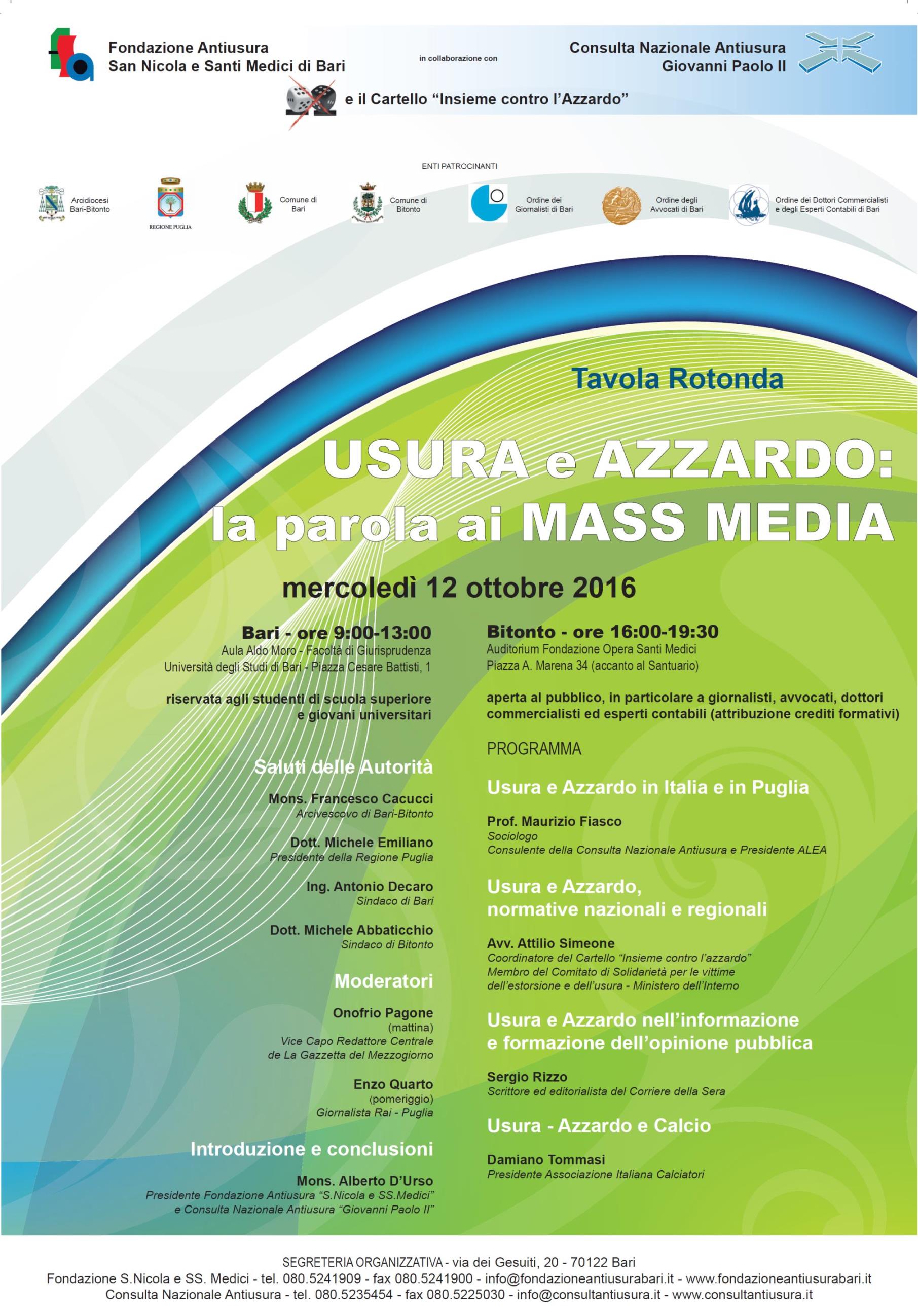 CONVEGNO USURA E AZZARDO: la parola ai MASS MEDIA