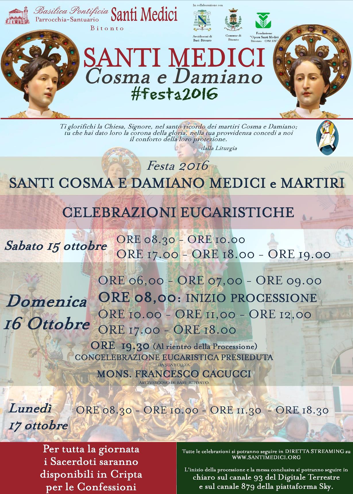 FESTA SANTI MEDICI 2016 - ORARIO CELEBRAZIONE