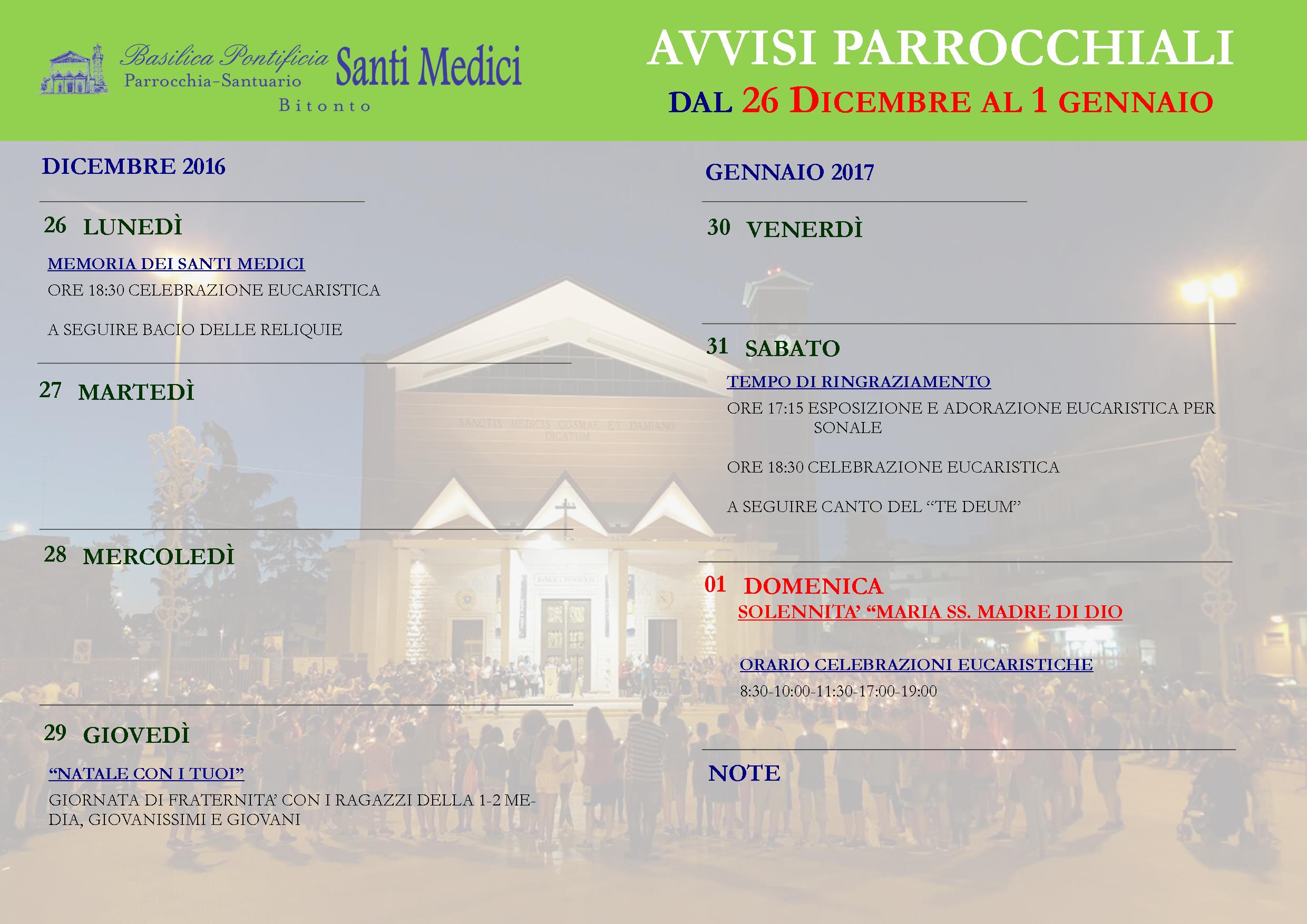 AVVISI SETTIMANA DAL 26 DICEMBRE AL 1 GENNAIO