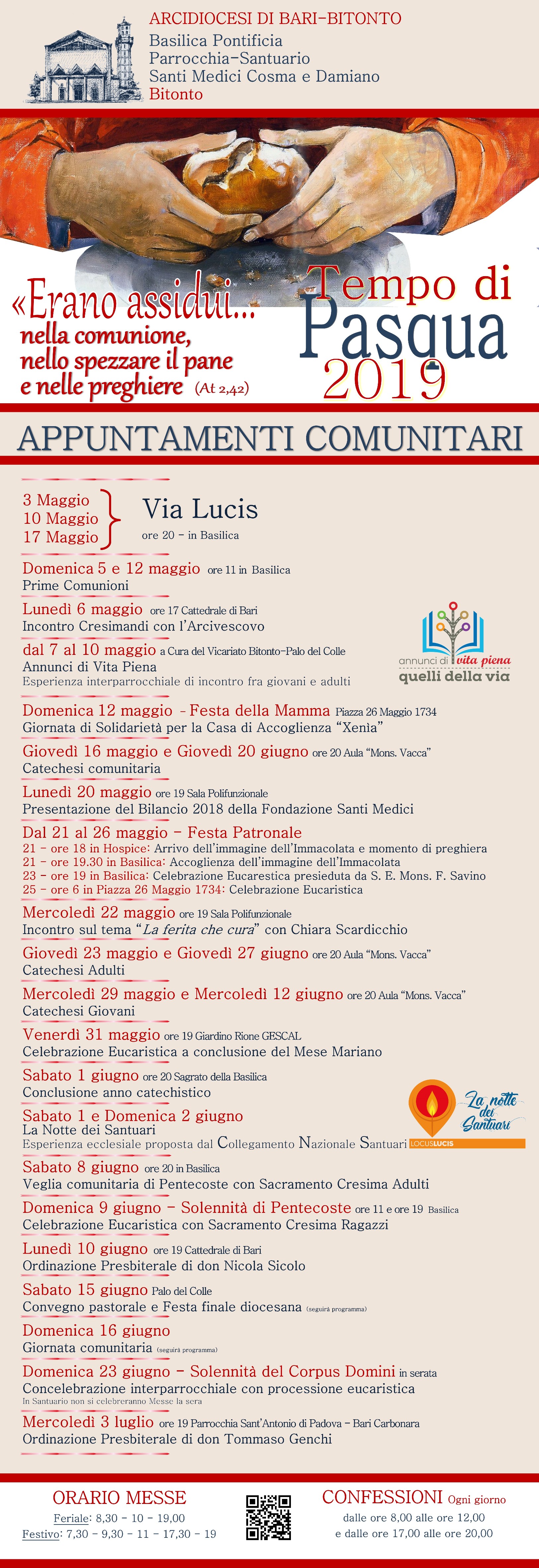 APPUNTAMENTI TEMPO DI PASQUA 2019