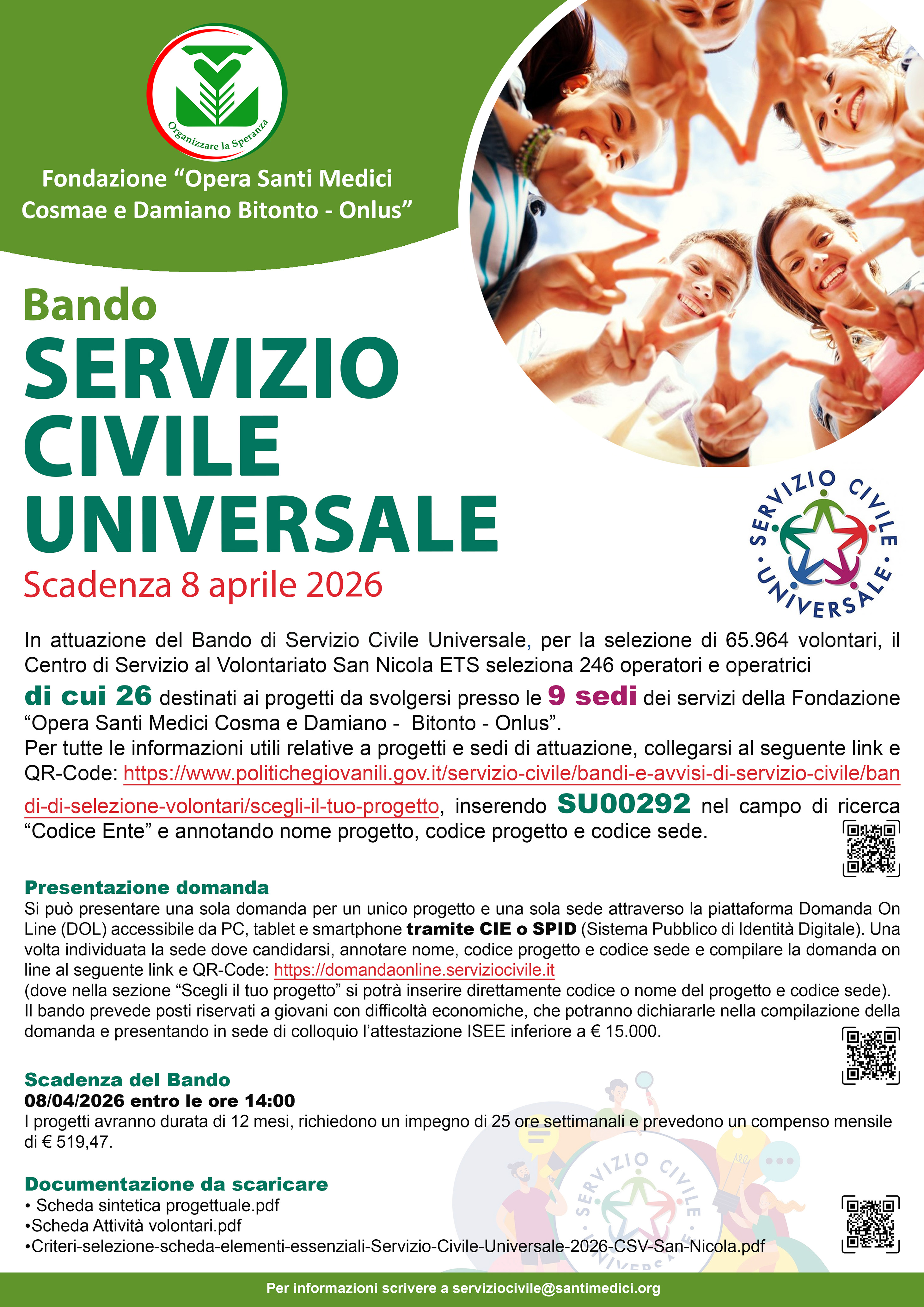 BANDO SERVIZIO CIVILE 2026